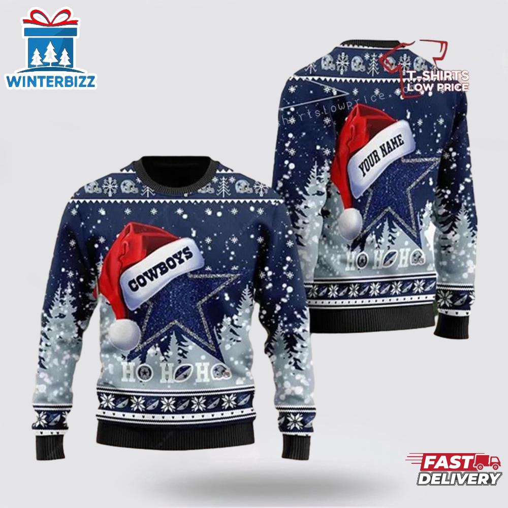 Dallas Cowboys Santa Hat Ugly Christmas Sweater Shirt is a Christmas sweater with funny, humorous, and quirky patterns. It will be a meaningful gift for you to show your love and care for your loved ones.