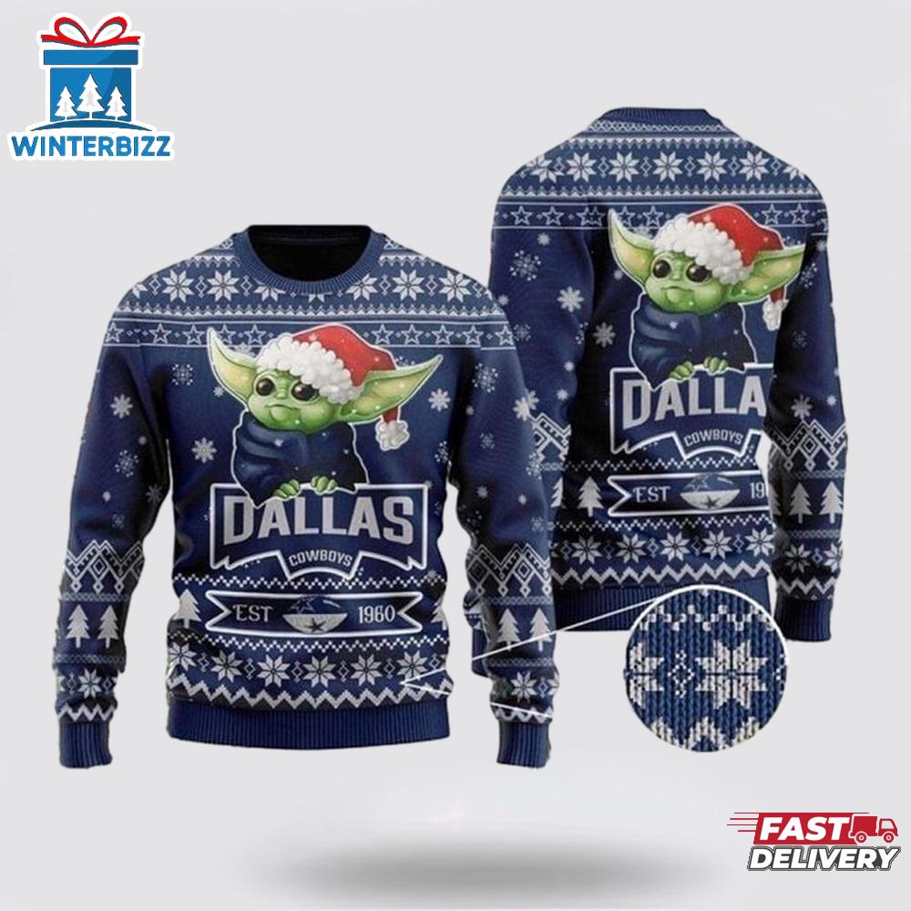 Dallas Cowboys Team Baby Yoda Ugly Christmas Sweater Shirt is a Christmas sweater with funny, humorous, and quirky patterns. It will be a meaningful gift for you to show your love and care for your loved ones.