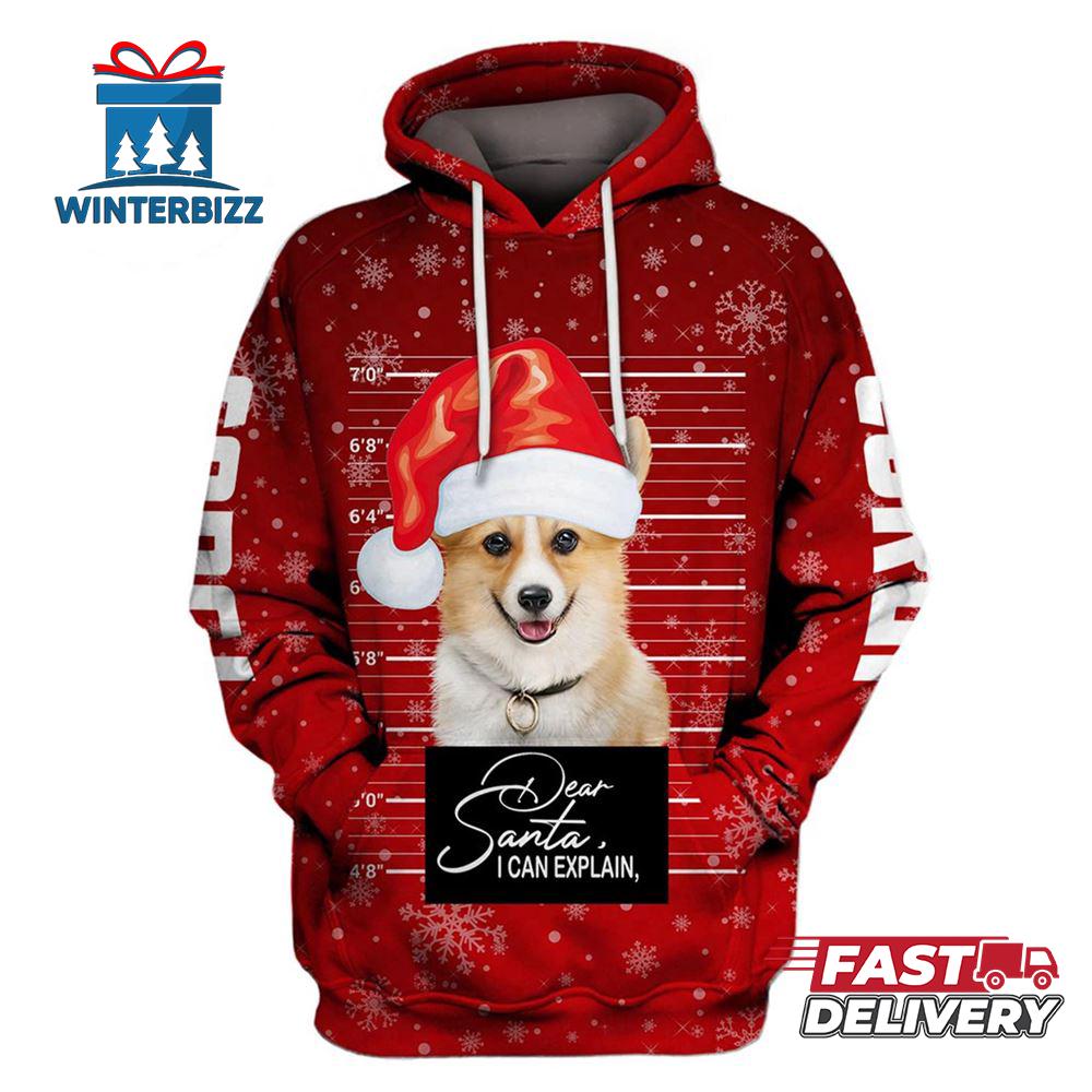 Dear Santa I Can Explain Corgi Santa Christmas Hoodie All Over Print The 3D Shirt is a fashion statement that goes beyond the ordinary. Using advanced printing technology, it brings designs to life with depth and vividness. Crafted from high-quality materials, it offers comfort and durability. The three-dimensional graphics create a captivating effect that’s perfect for casual wear or making a bold statement. Whether you’re expressing your fandom or showcasing your unique taste, the 3D Shirt is a wearable work of art that sets you apart from the crowd.