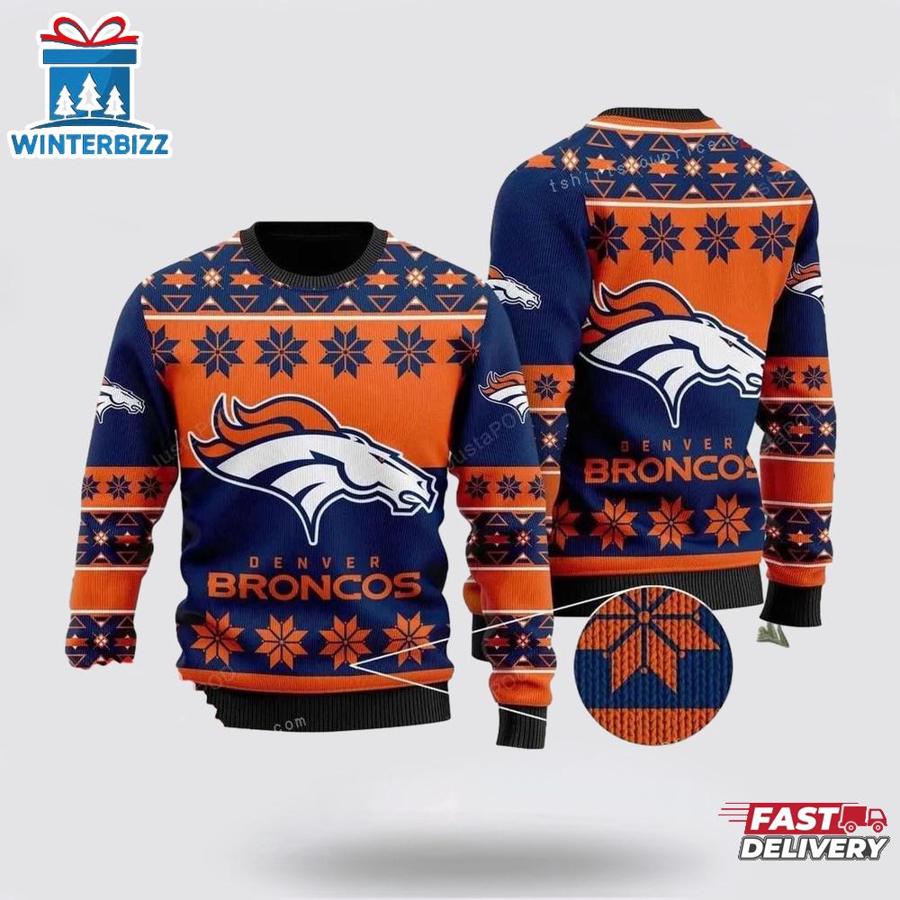 Photos Of Denver Broncos Navy Blue Orange Ugly Christmas Sweater Shirt