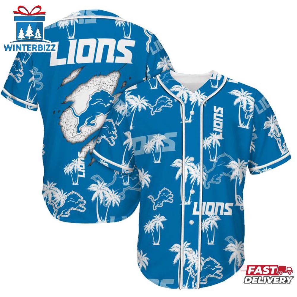 Photos Of Detroit Lions Palm Tree Pattern Baseball Jersey Shirts