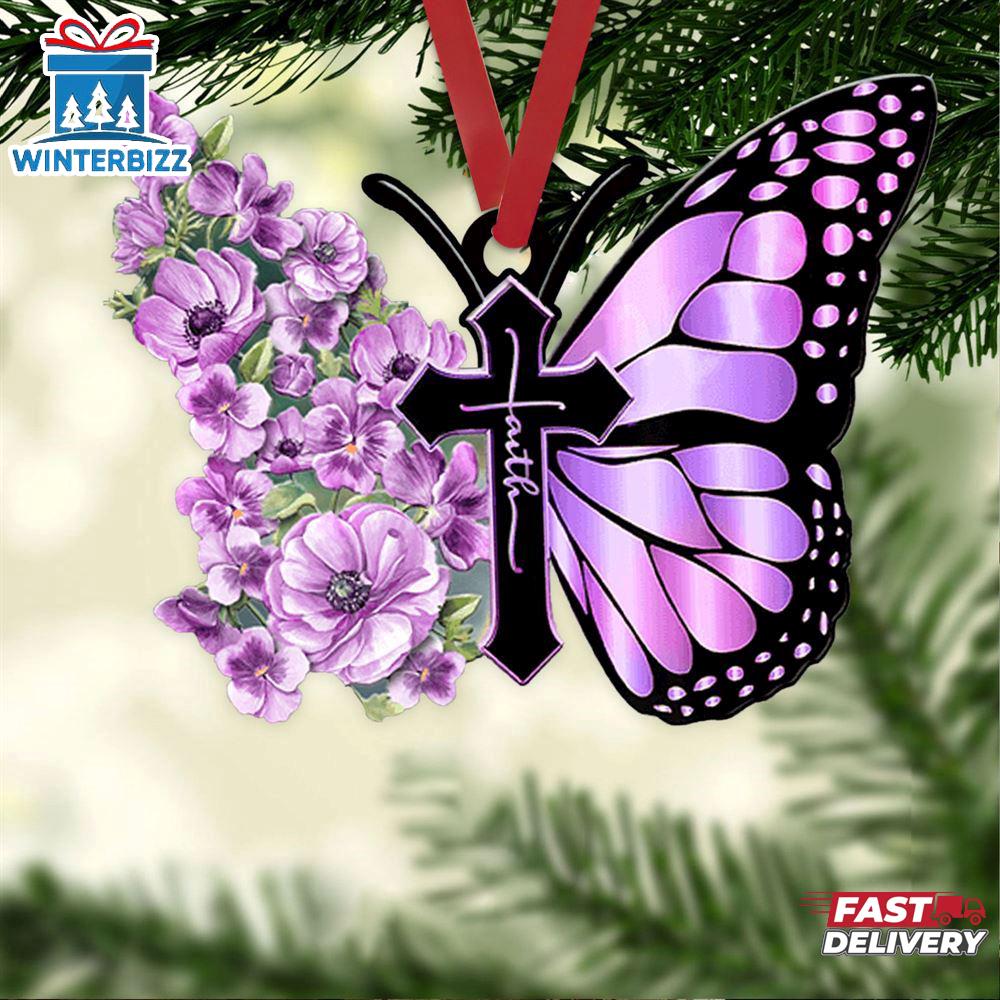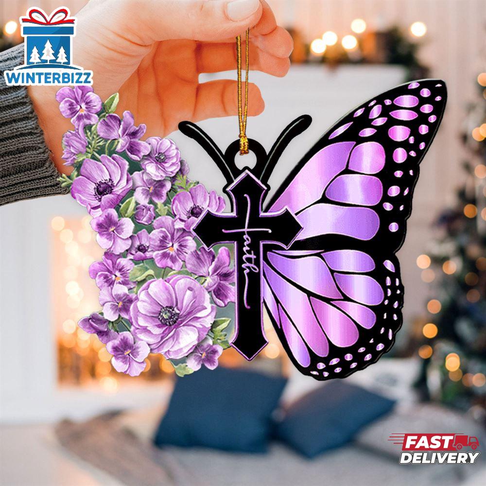 Photos Of Faith Purple Pansy Butterfly Jesus Cross Christian Religious Lover Ornament God Christmas Ornament Decor