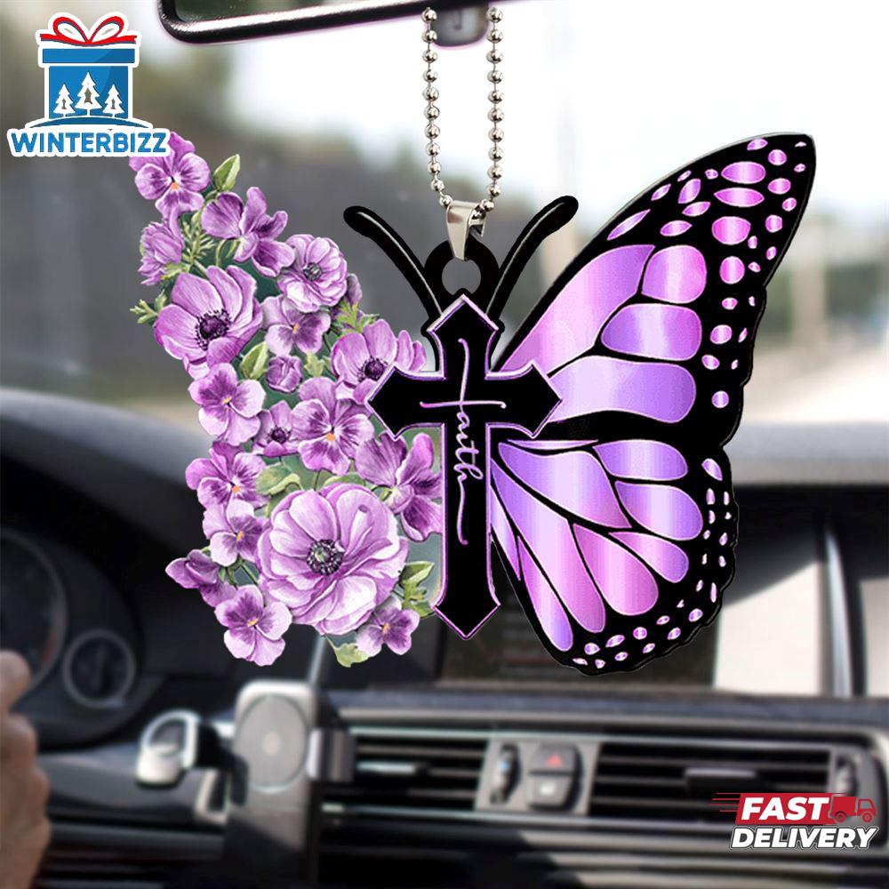 - Blue Butterfly Pray For God Jesus Cros Christian Car Ornament God Christmas Ornament Decor