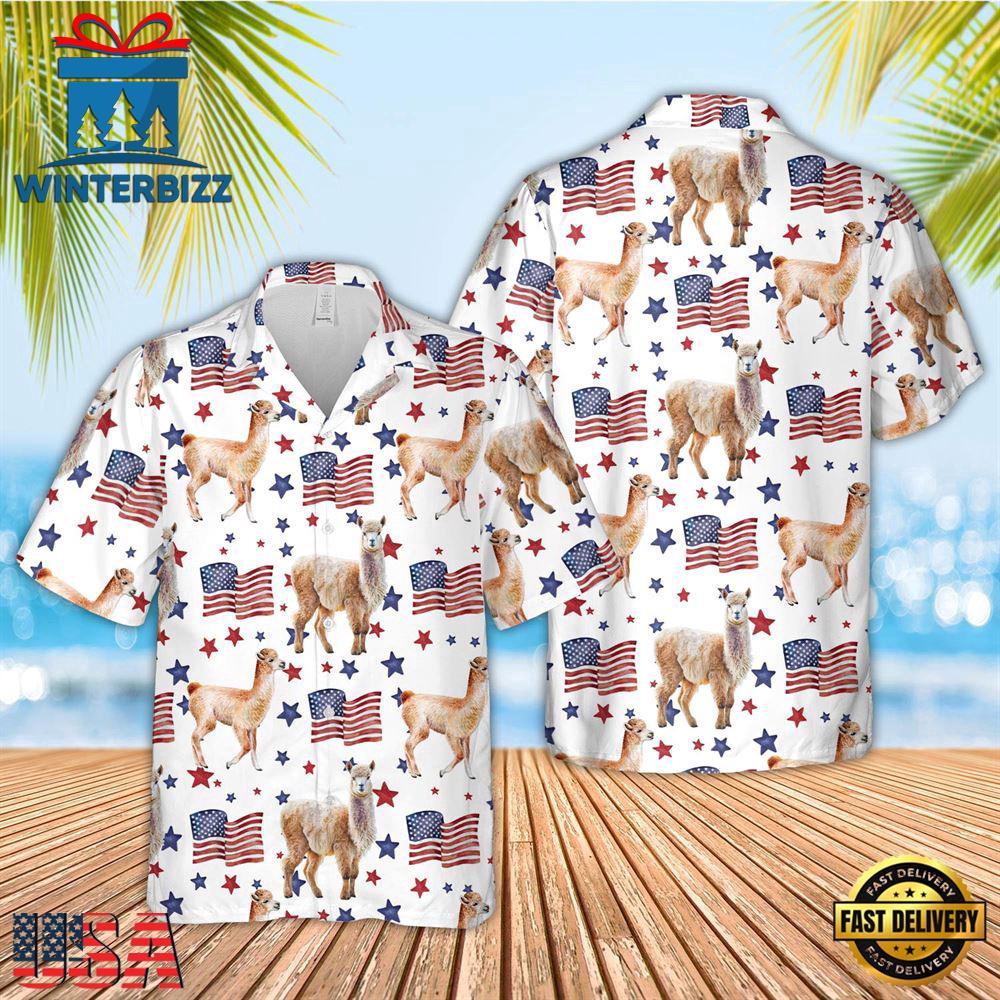 Photos Of Farm Hawaiian Shirt, Alpaca American Flag Pattern Hawaiian Shirt, Funny Hawaiian Shirt