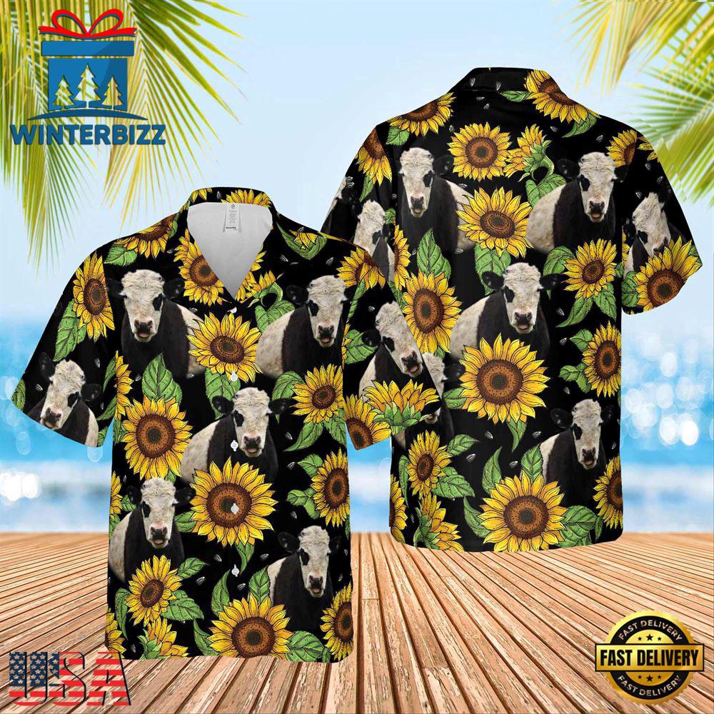 Photos Of Farm Hawaiian Shirt, Belted Galloway Sunflower Hawaiian Shirt 2023, Funny Hawaiian Shirt