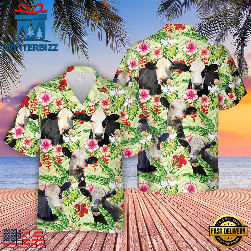 Photos Of Farm Hawaiian Shirt, Black Baldy Hibicus Floral 3D Hawaiian Shirt, Funny Hawaiian Shirt