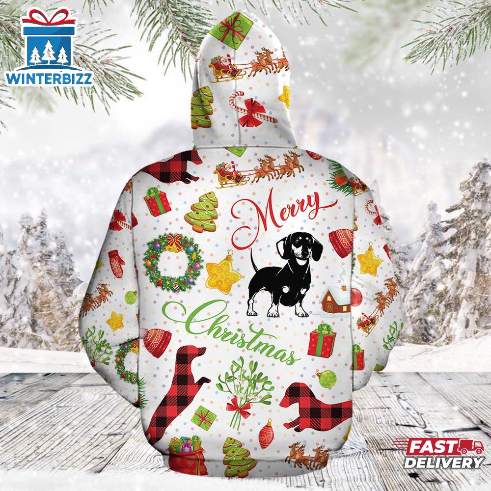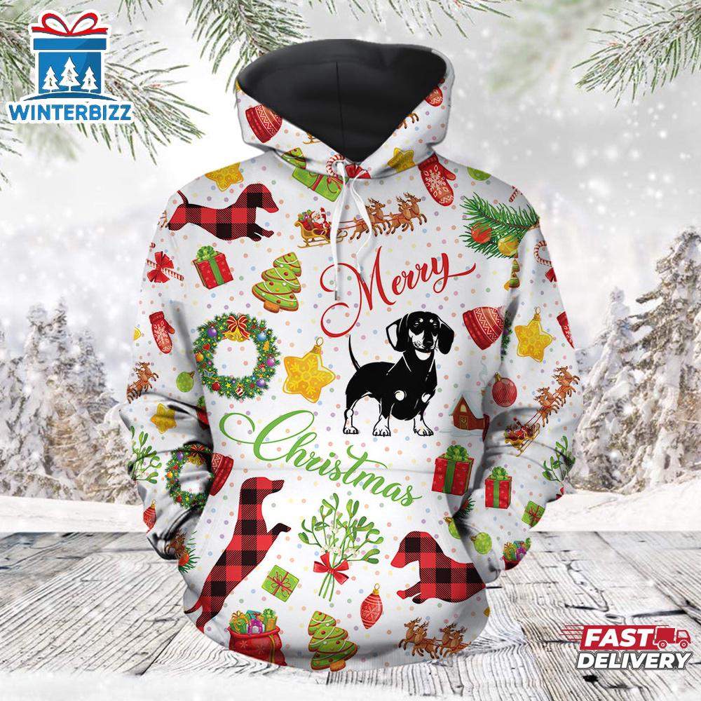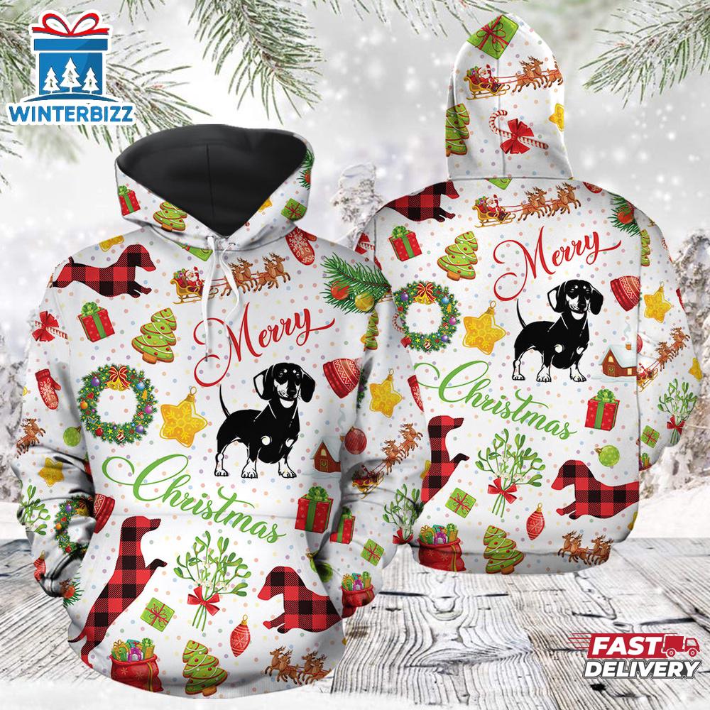 Product details: Funny Dachshund Merry Christmas 3D Hoodie Holiday All Over Print Shirt