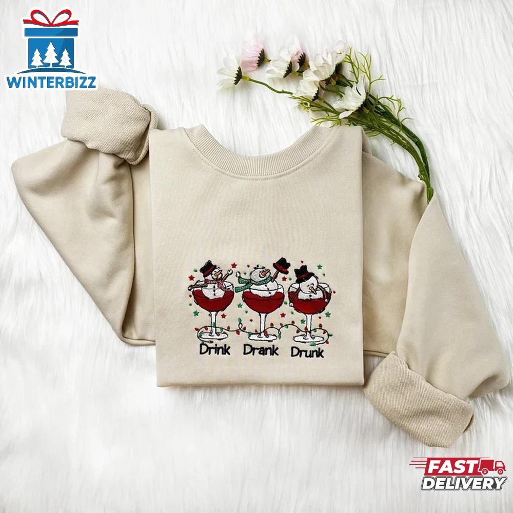 Photos Of Funny Drink Drank Drunk Christmas Snowman Embroidered Sweatshirt Christmas Embroidery Shirt Gift
