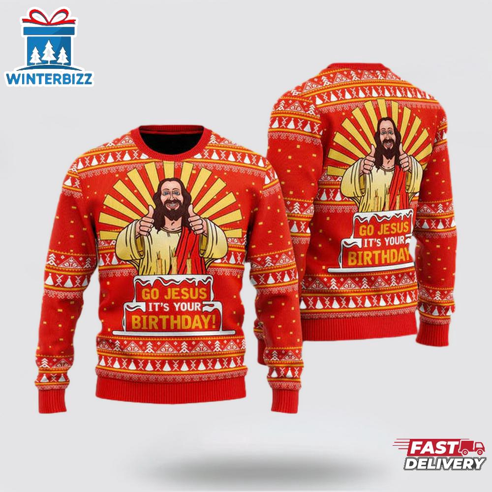 Photos Of Go Jesus It’s Your Birthday Ugly Christmas Sweater For Jesus Lovers Gift