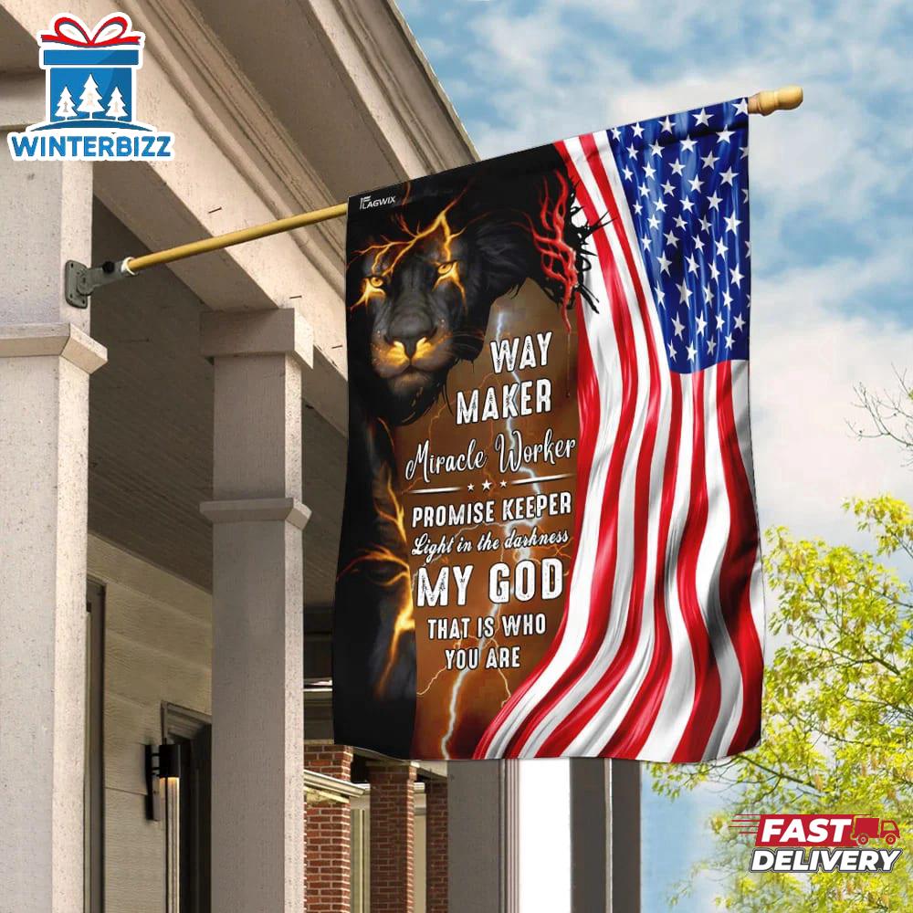 God Jesus Christian American House Flags And Jesus Way Maker And Miracle Worker Garden And House Flag