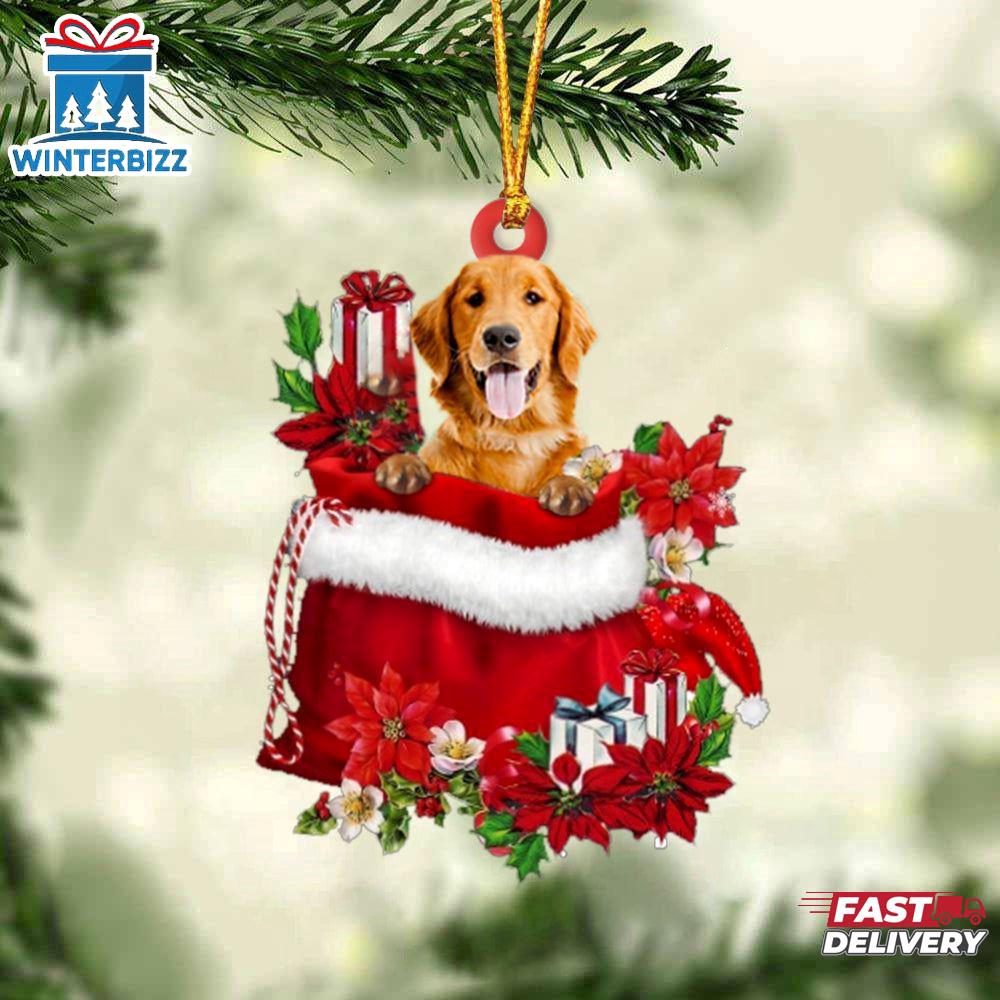 Photos Of Golden Retriever In Gift Bag Christmass Ornaments, Christmas Cute Pet Ornament Decor
