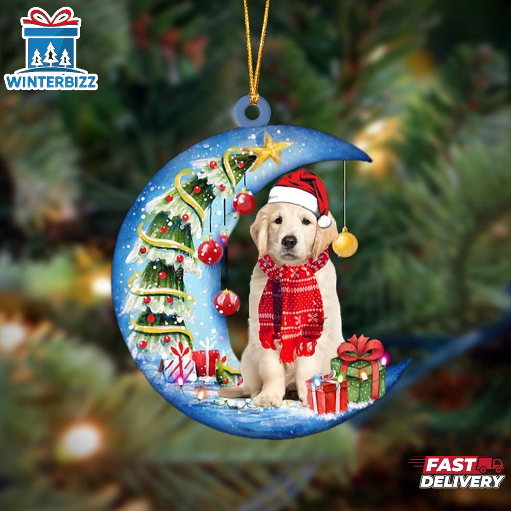 Product details: Golden retriever Sits On The Moon Merry Christmas Ornament Pet Ornaments Decor