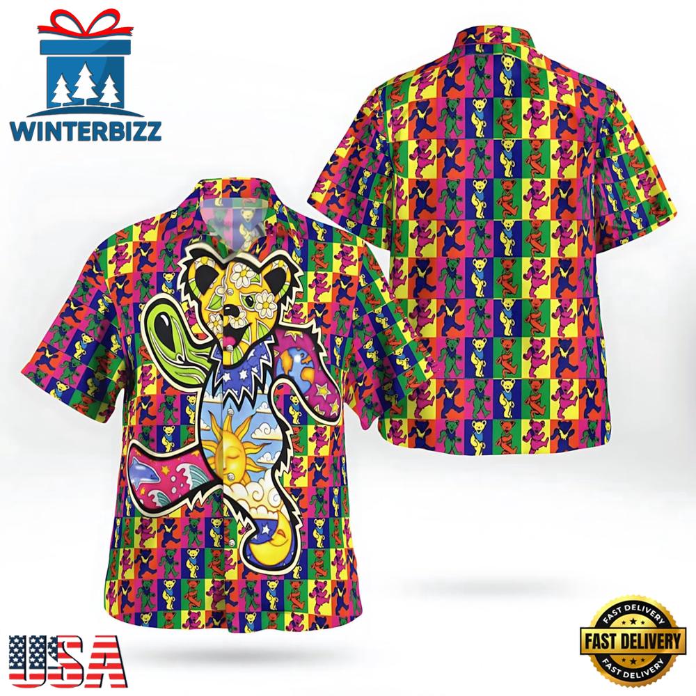 Grateful Dead Psychedelic Dancing Bear Unisex Hawaiian Shirt , Grateful Dead Shirt For Men Women