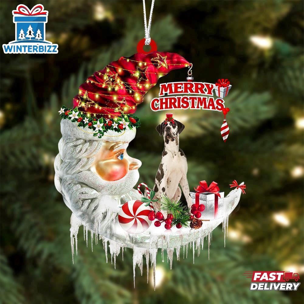 Product details: Great Dane On The Moon Merry Christmas Ornament Pet Ornaments Decor