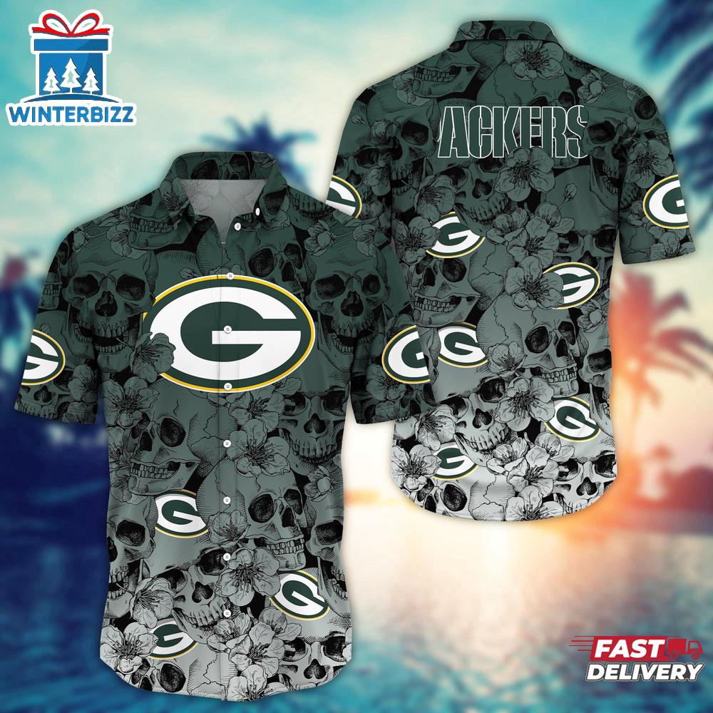 Green Bay Packers Skull Pattern NFL Hawaiian Shirt