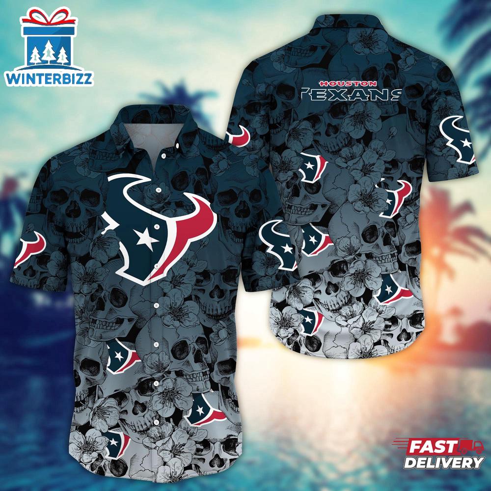 Photos Of Houston Texans Skull Pattern NFL Hawaiian Shirt