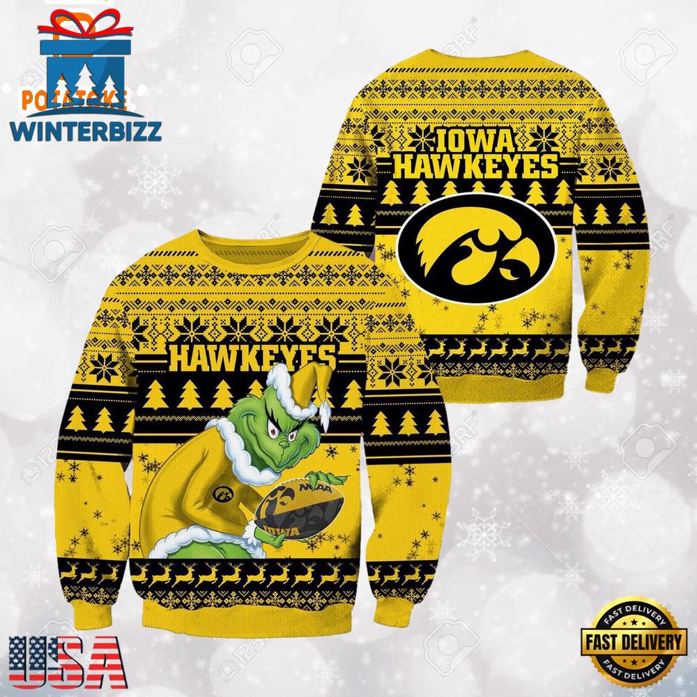 Iowa Hawkeyes Grinch Custom Name NCAA Ugly Christmas Sweater , NCAA Christmas Sweaters is a Christmas sweater with funny, humorous, and quirky patterns. It will be a meaningful gift for you to show your love and care for your loved ones.