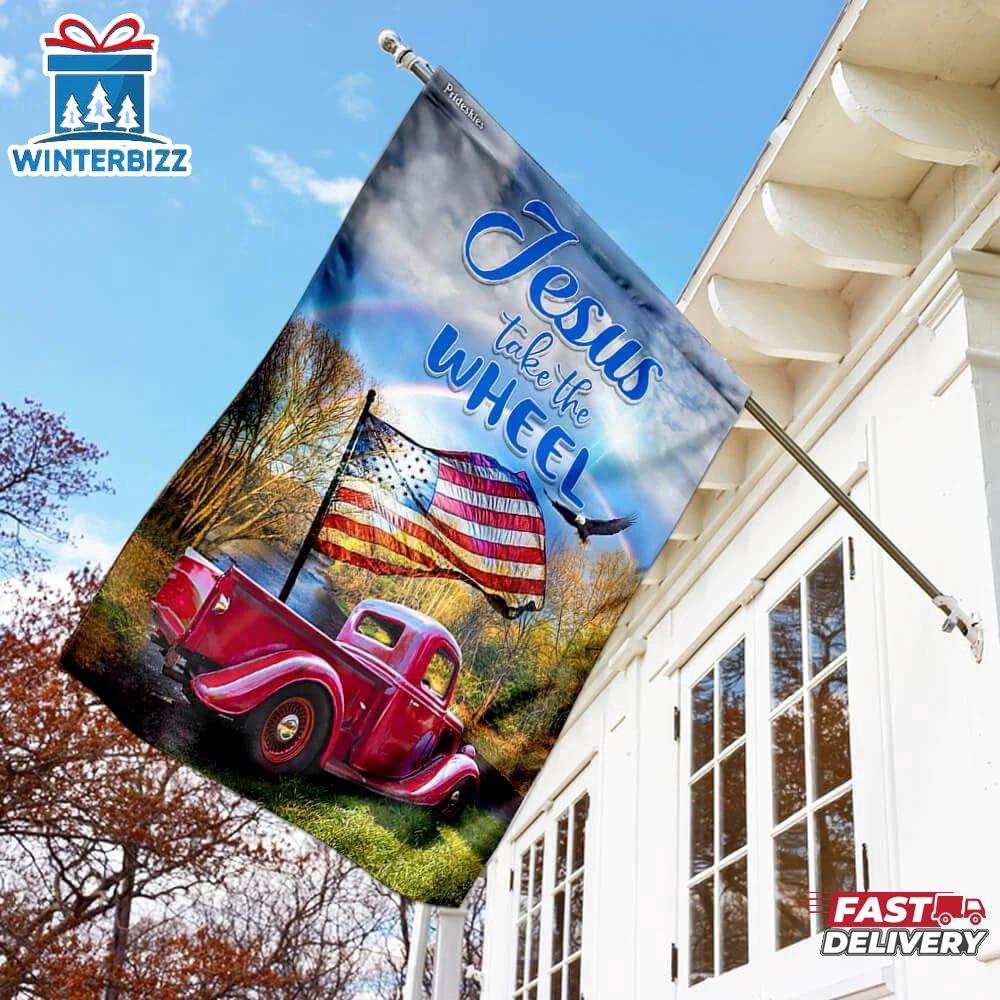 Jesus And The American House Flags Jesus Take The Wheel House And Garden Flag