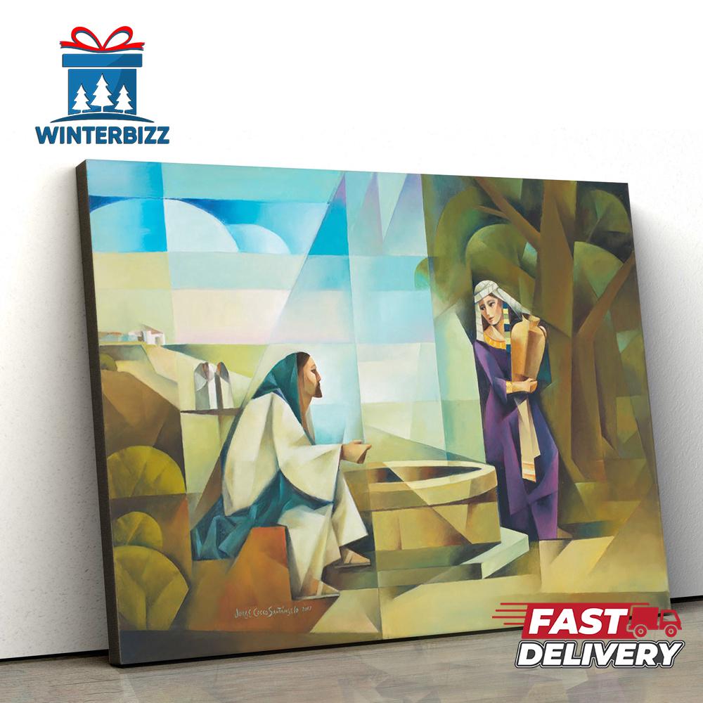 Product details: Jesus And The Samaritan Woman Canvas Wall Art Jesus Christ Picture Canvas Christian Wall Art