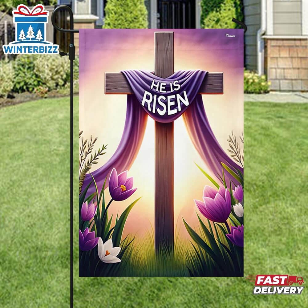 Jesus Easter Day He Is Risen Christian Cross House And Garden Flag