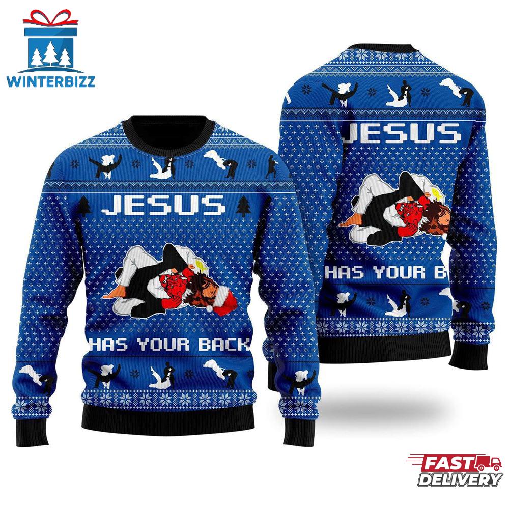 Product details: Jesus Has Your Back Jiu Jitsu Merry Christmas Sweater 3D Shirt Gift For Jesus Lovers
