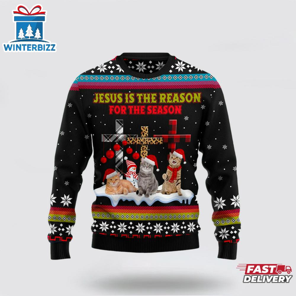 Jesus is the reason for the season Cat Ugly Christmas Sweater For Jesus Lovers Gift Nothing says fall quite like a cozy, medium-weight sweater with a relaxed fit for those crisp autumn days.
