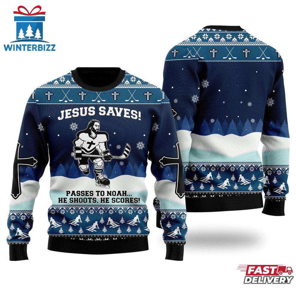 - Hockey Jesus Saves Christmas Ugly Christmas Sweater For Jesus Lovers Gift