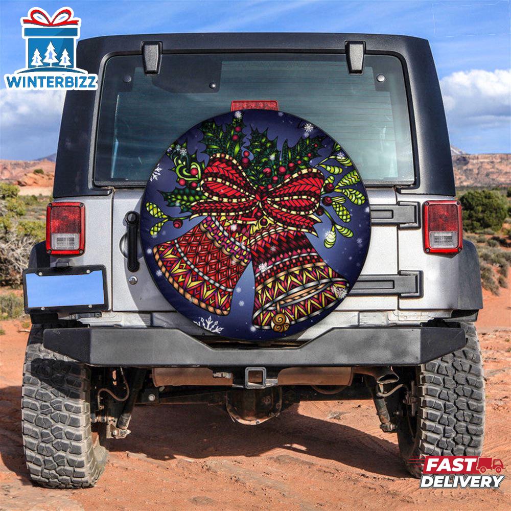 Jingle Bell Hippie Art Car Spare Tire Cover Decoration The Spare Tire Cover is a functional and stylish accessory for any vehicle. Constructed from durable materials, it offers essential protection for your spare tire against sun, rain, and dust. Its tailored fit and elasticized edges ensure it remains securely in place, even at high speeds.