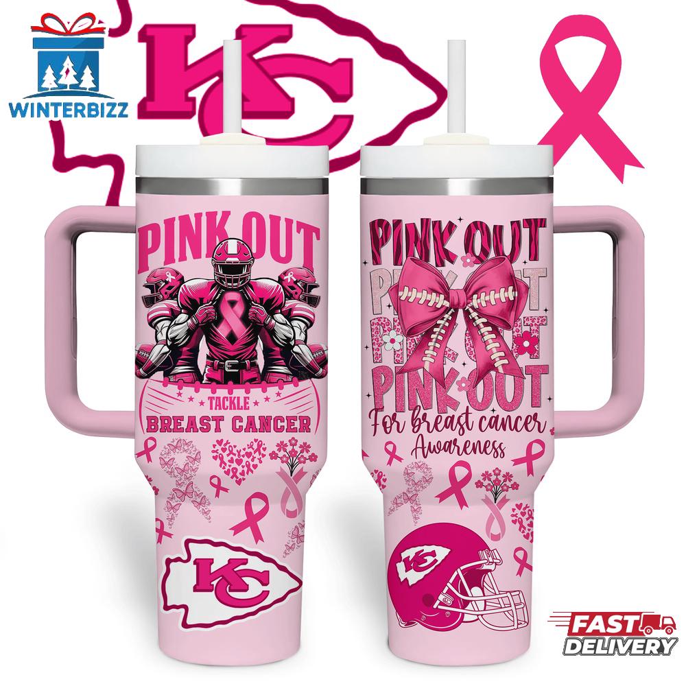 Photos Of Kansas City Chiefs NFL Breast Cancer Tumbler 40Oz Handle Gift For Fans