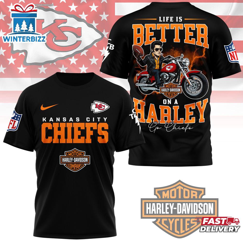 Photos Of Kansas City Chiefs NFL Elvis Presley Harley Davidson 3D T-Shirt For Fans