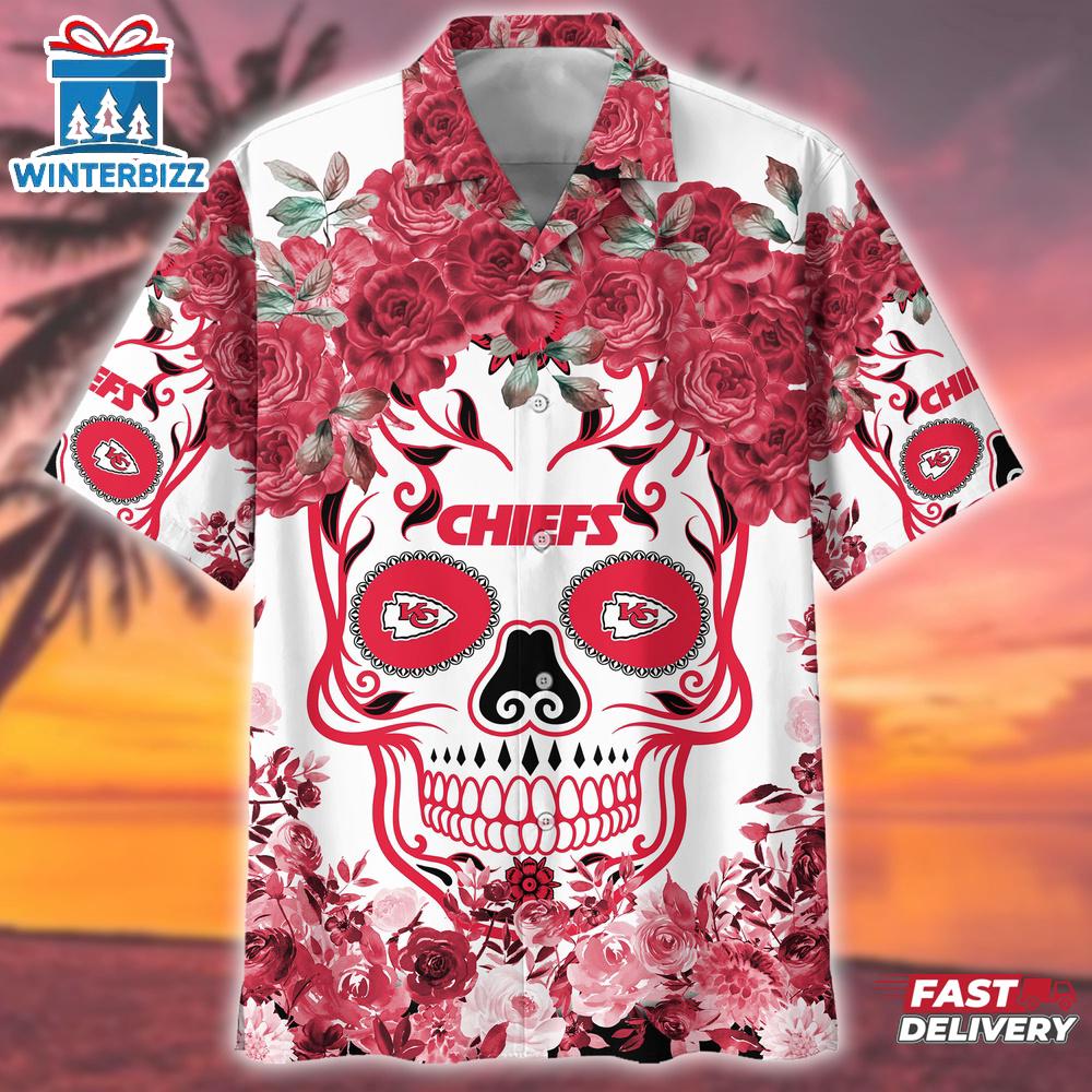 Photos Of Kansas City Chiefs NFL Flower Skull Hawaiian Shirt For Fans