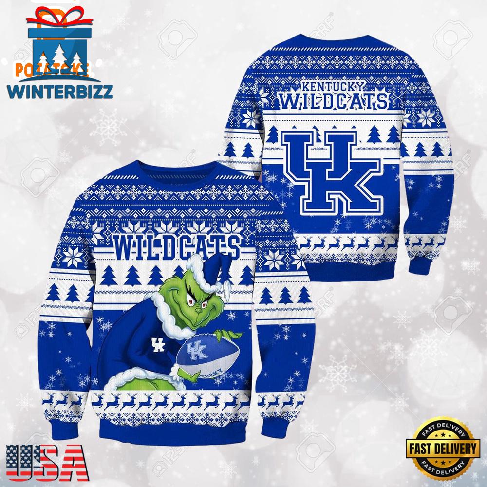 Kentucky Wildcats Grinch Custom Name NCAA Ugly Christmas Sweater , NCAA Christmas Sweaters is a Christmas sweater with funny, humorous, and quirky patterns. It will be a meaningful gift for you to show your love and care for your loved ones.