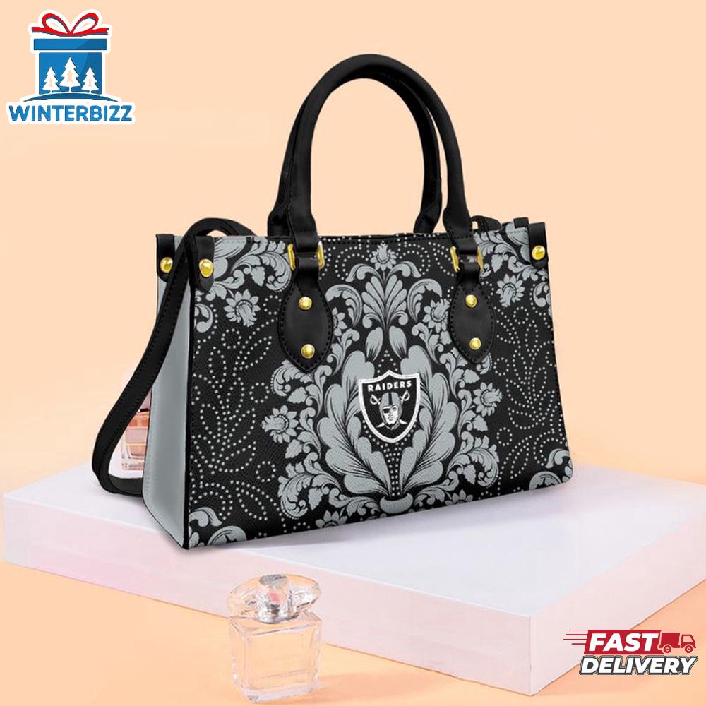 Las Vegas Raiders Flower Pattern NFL Leather Handbag This bag is a practical accessory for style-conscious individuals on the move and makes a wonderful gift for special occasions. Crafted with precision and attention to detail, it is made from high-quality PU leather and includes a soft microfiber layer to safeguard your belongings. The bag is designed with two zippered compartments, a flat pocket, and a detachable pocket, offering ideal organization for your essentials. Spacious enough to carry daily items like your phone, keys, and makeup, it can be carried by hand or worn over the shoulder with an adjustable strap, making it perfect for work, school, travel, and more.