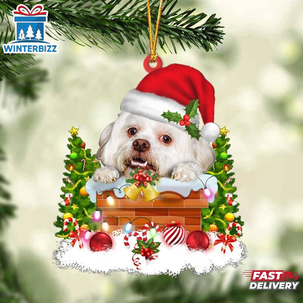 - Maltese On The Moon Merry Christmas Ornament Pet Ornaments Decor