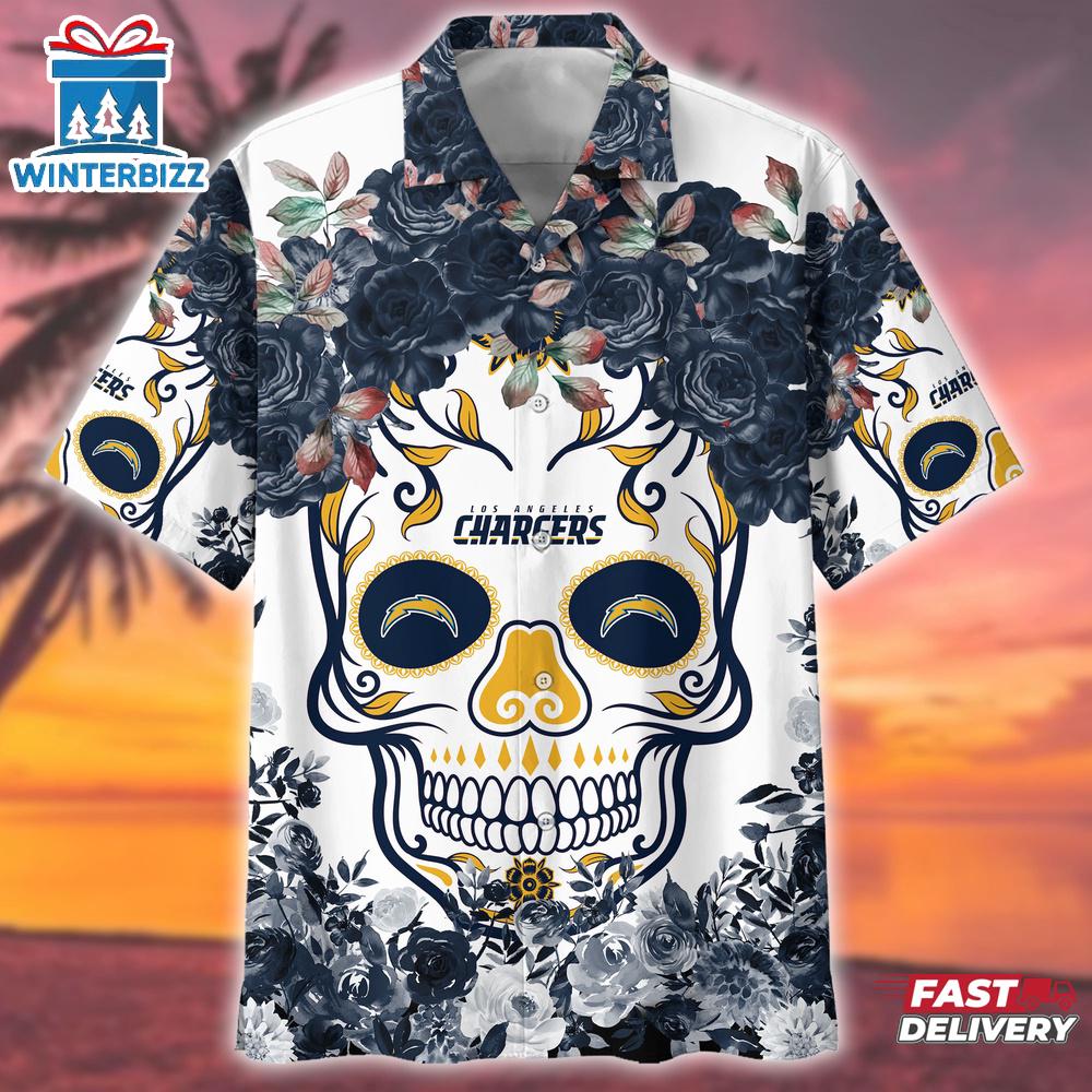 Los Angeles Chargers NFL Flower Skull Hawaiian Shirt For Fans
