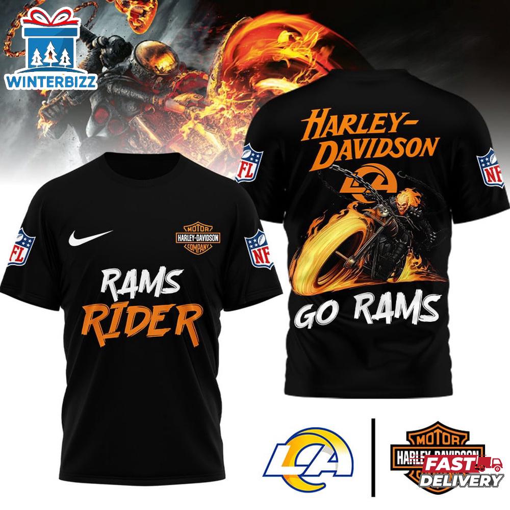 Los Angeles Rams NFL Ghost Rider Harley Davidson 3D T-Shirt For Fans