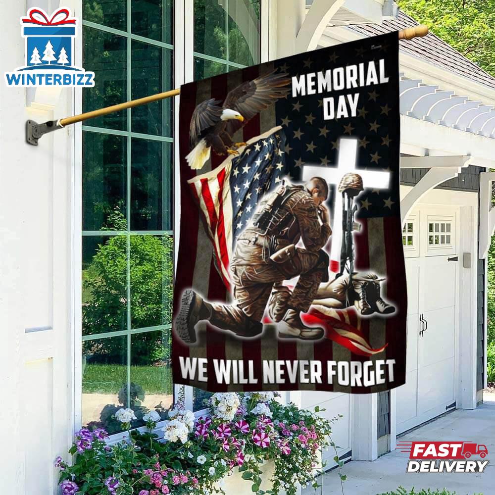 - Memorial Day Veteran Kneeling Soldier The Cross Lest We Forget House And Garden Flag