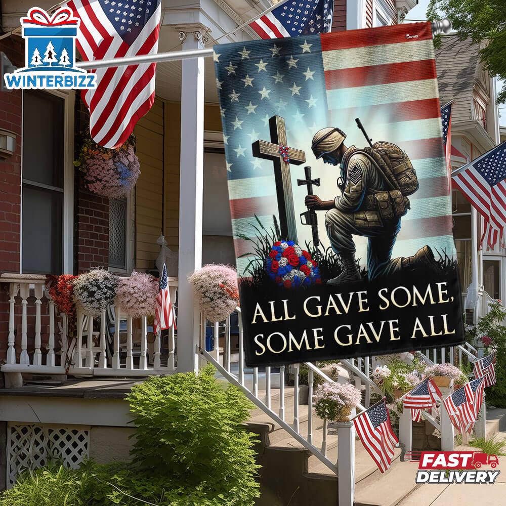 Memorial Day Veteran Kneeling The Cross American Soldier All Gave Some Some Gave All House And Garden Flag