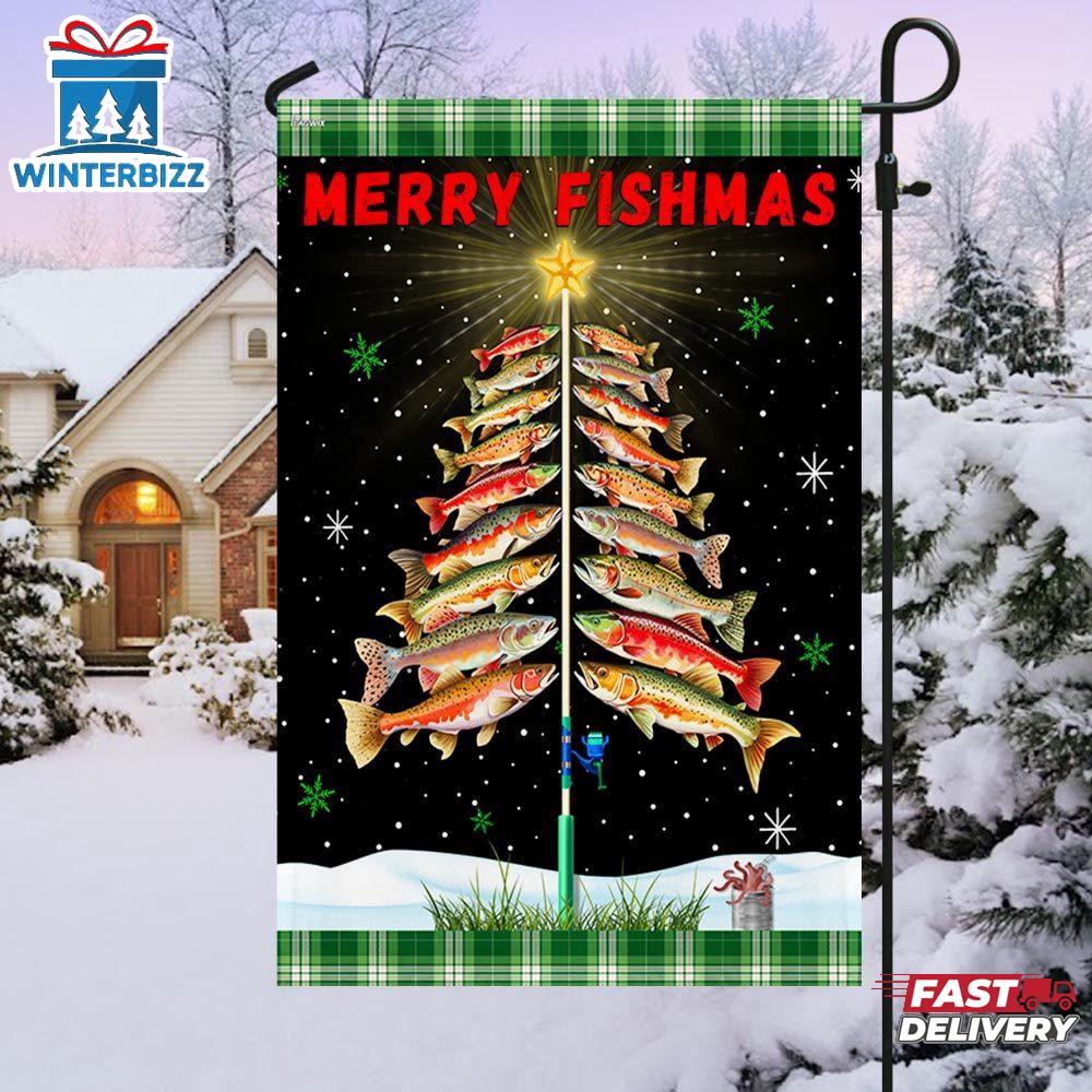 Product details: Merry Fishmas Tree Christmas Garden Flag Holiday House Flag Decor