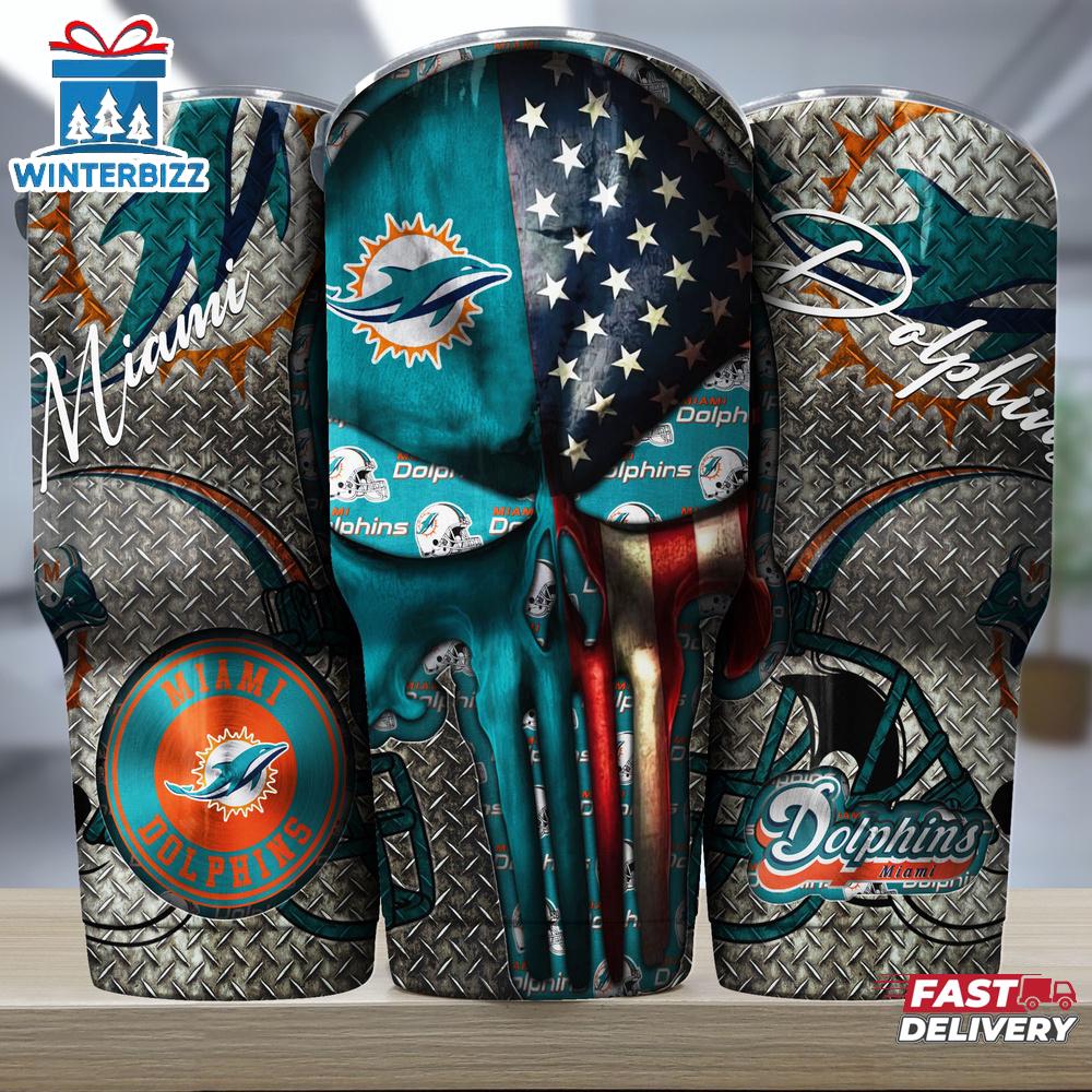 Photos Of Miami Dolphins NFL Skull Iron Pattern Tumbler