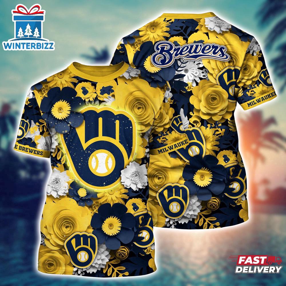 Photos Of MLB Milwaukee Brewers All Over Print T-Shirt Sunset Slam Chic For Fans Sports