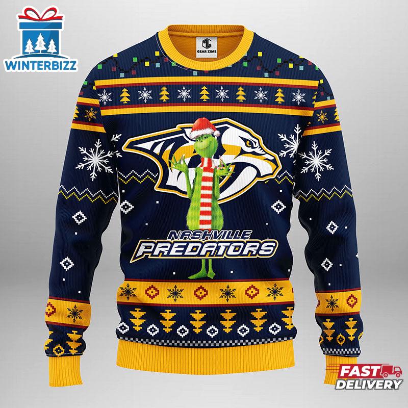 Product details: Nashville Predators Funny Grinch Ugly Christmas Sweater Gift For Fans