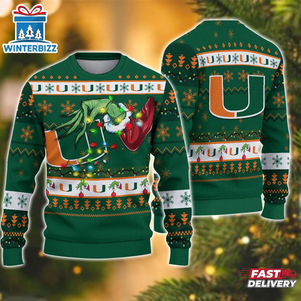 Product details: NCAA Miami Hurricanes Grinch Merry Christmas 3D Sweater