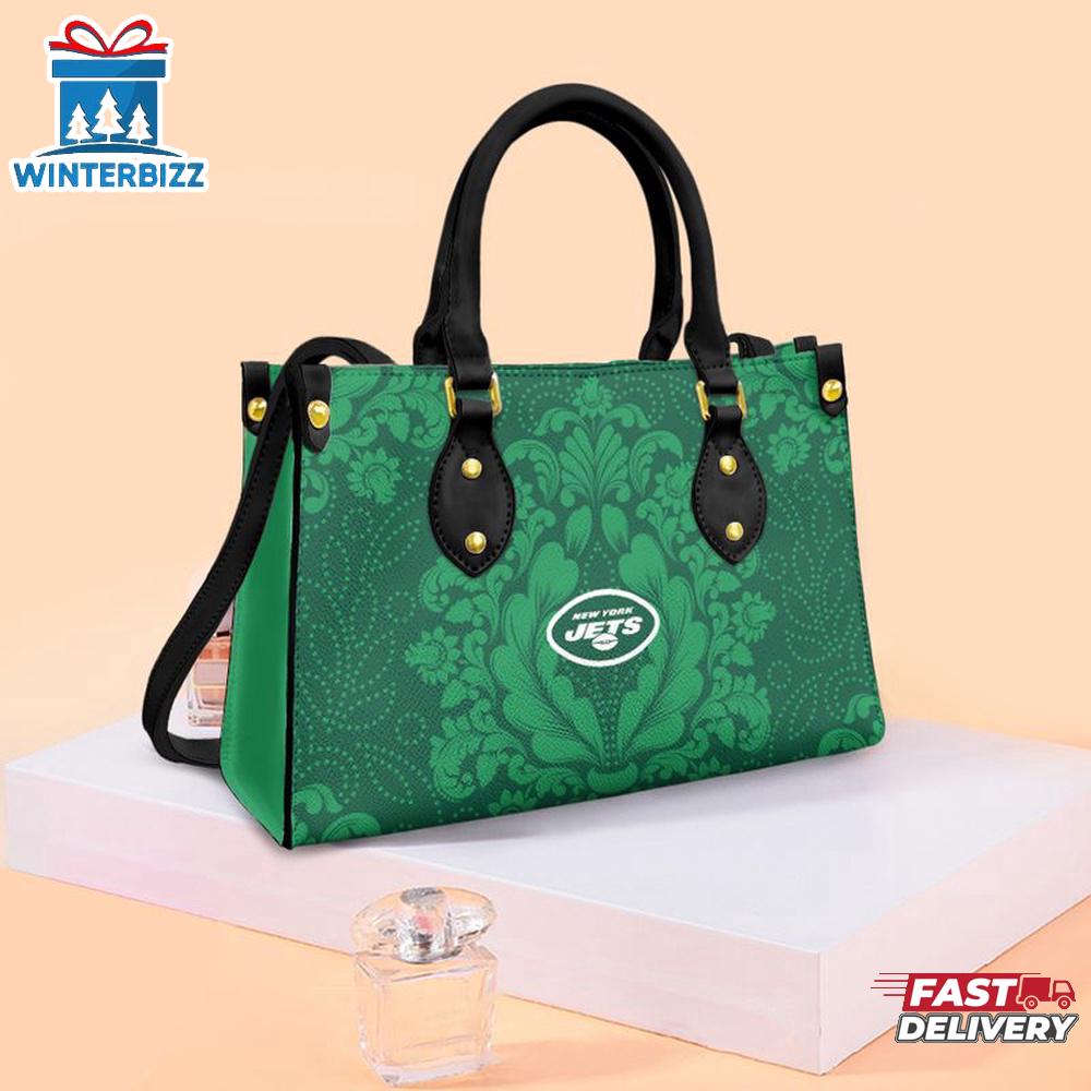 New York Jets Flower Pattern NFL Leather Handbag This bag is a practical accessory for style-conscious individuals on the move and makes a wonderful gift for special occasions. Crafted with precision and attention to detail, it is made from high-quality PU leather and includes a soft microfiber layer to safeguard your belongings. The bag is designed with two zippered compartments, a flat pocket, and a detachable pocket, offering ideal organization for your essentials. Spacious enough to carry daily items like your phone, keys, and makeup, it can be carried by hand or worn over the shoulder with an adjustable strap, making it perfect for work, school, travel, and more.