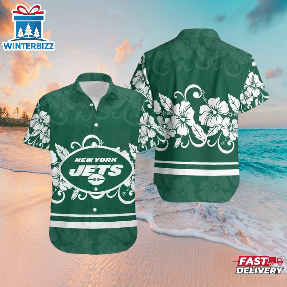 New York Jets Tropical Hibiscus Hawaiian Shirt