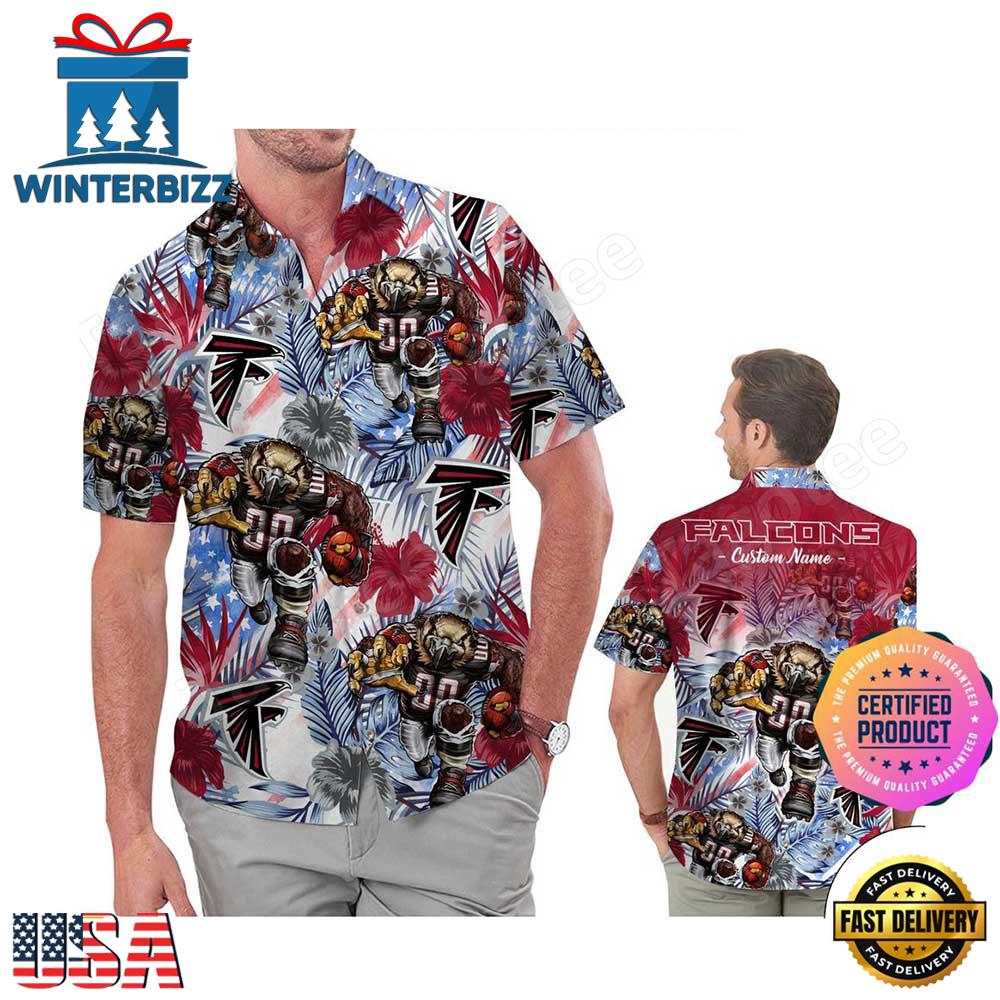NFL Atlanta Falcons America Flag Tropical Floral Custom Hawaiian Shirt , Hawaiian Shirt For Mens