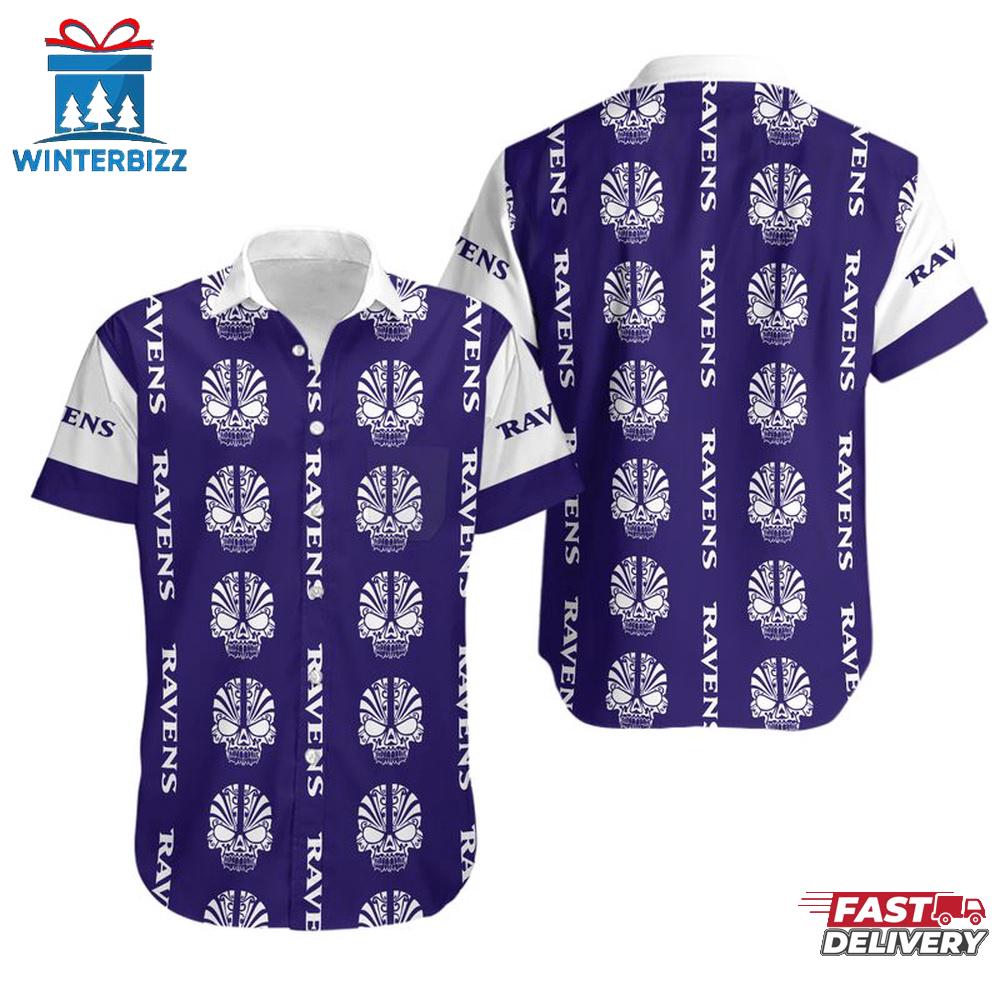 NFL Baltimore Ravens Mystery Skull Pattern Hawaiian Shirt