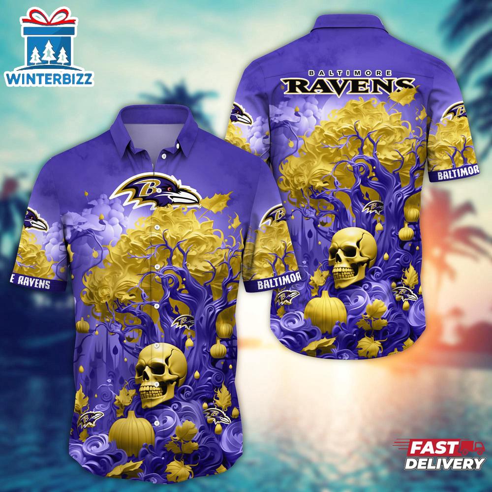 NFL Baltimore Ravens Skull Tree Hawaiian Shirt