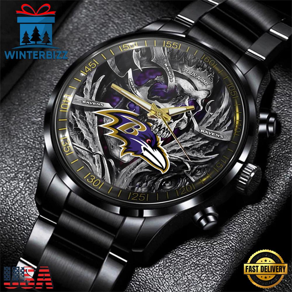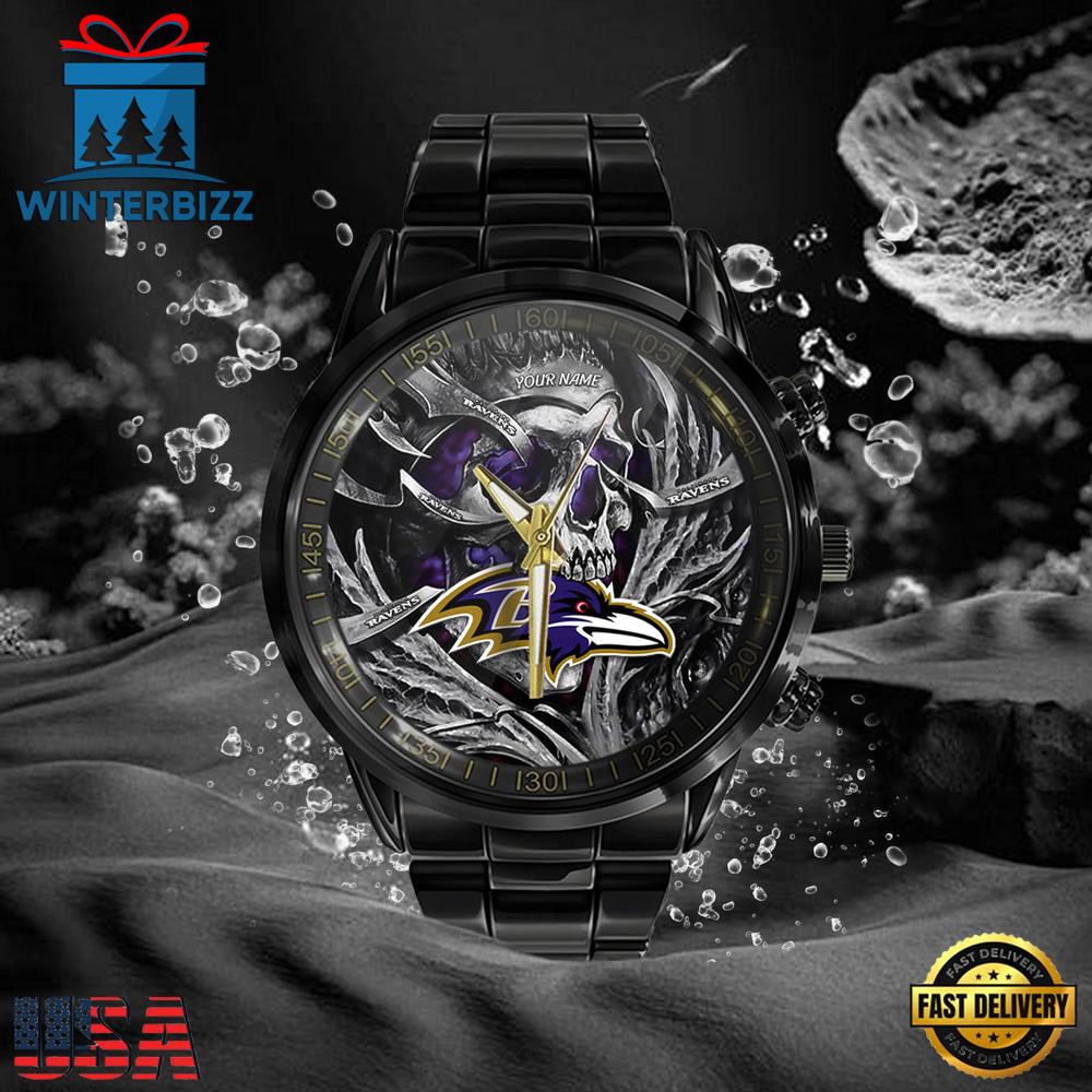 NFL Custom Name Baltimore Ravens Men Black Stainless Steel Watch