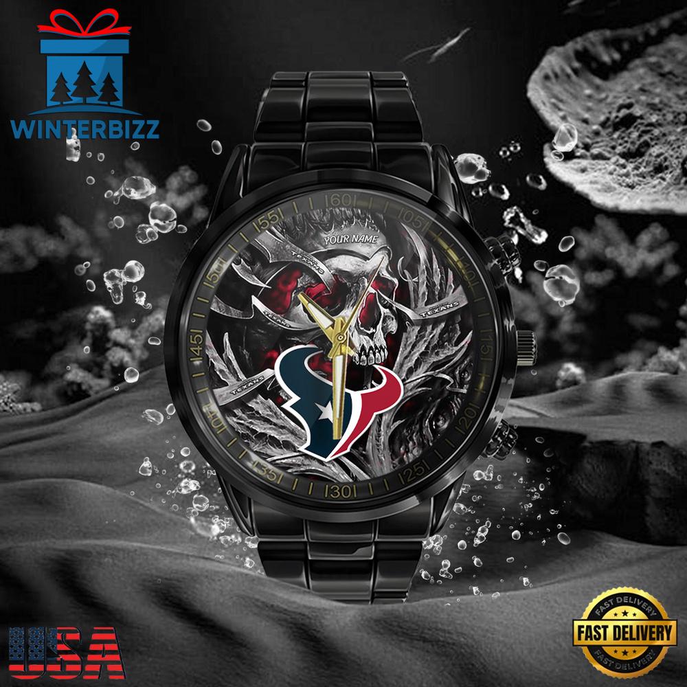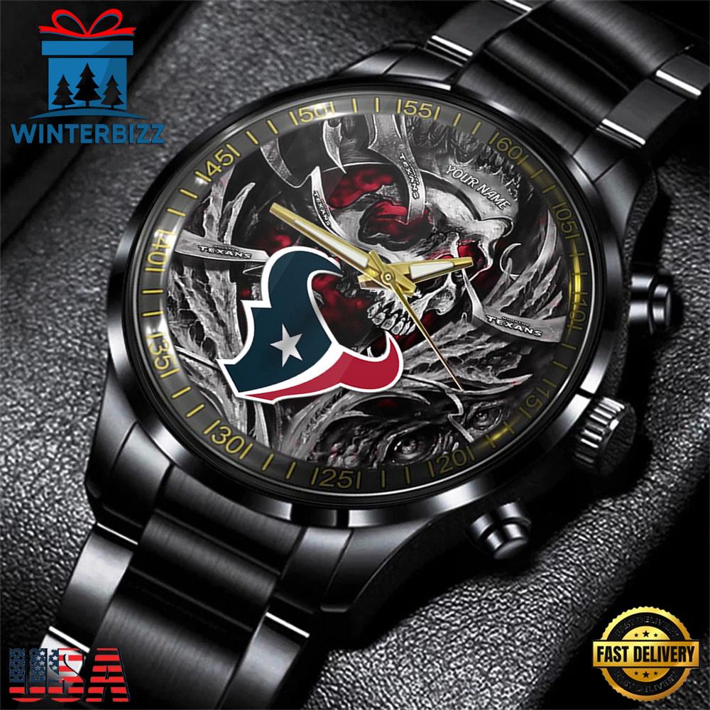 NFL Custom Name Houston Texans Men Black Stainless Steel Watch